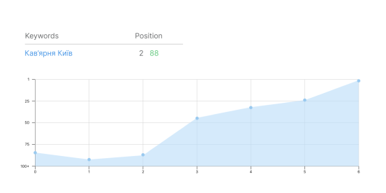 Позиції ключового слова "Кав'ярня Київ" вийшли на 2 позицію видачі, за 5 місяців