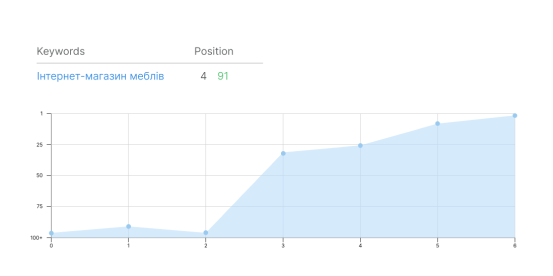 The positions of the keyword "online furniture store" reached the 4th position of the issue, in 5 months
